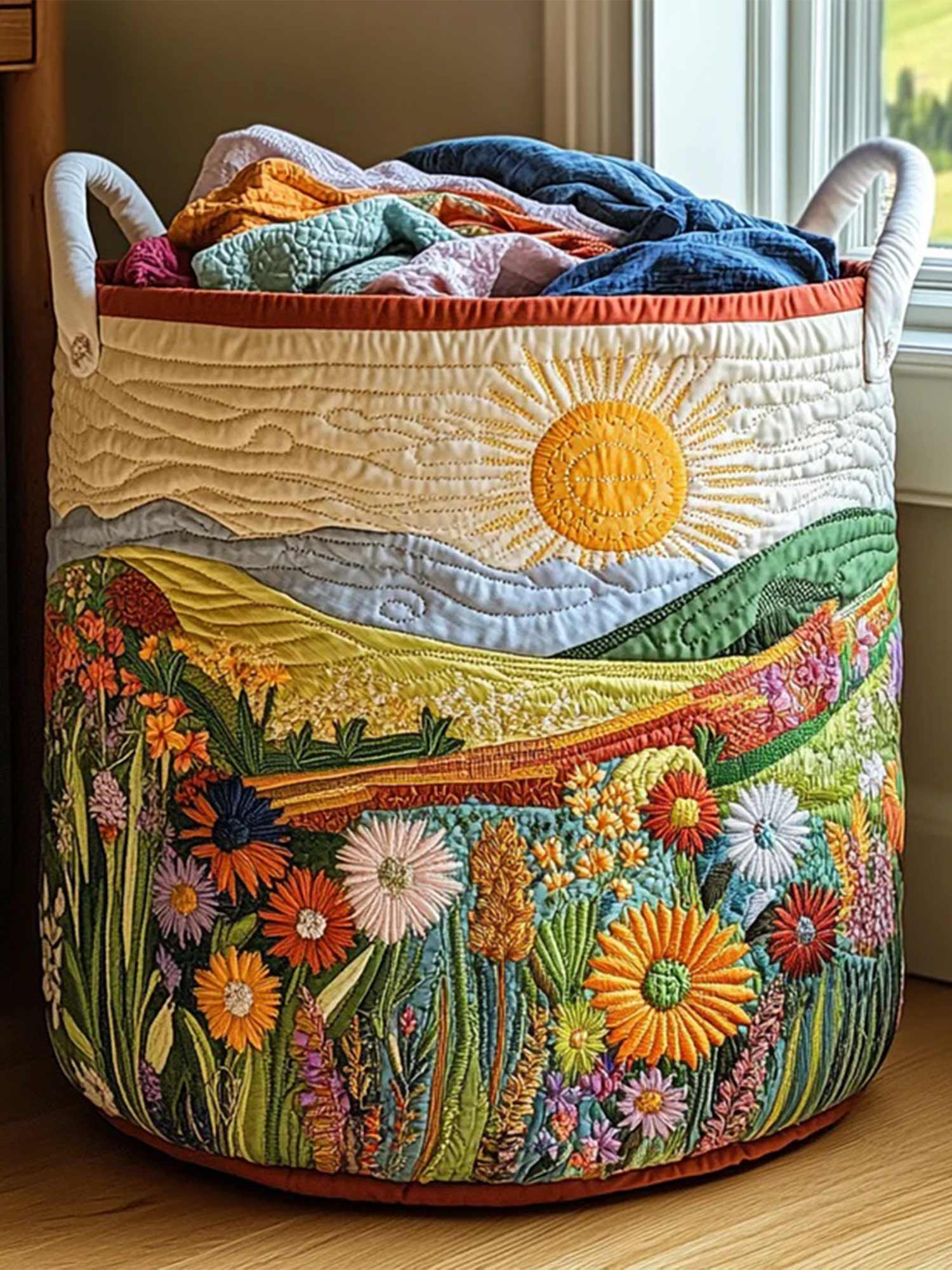 Flower Field Quilted Laundry Basket