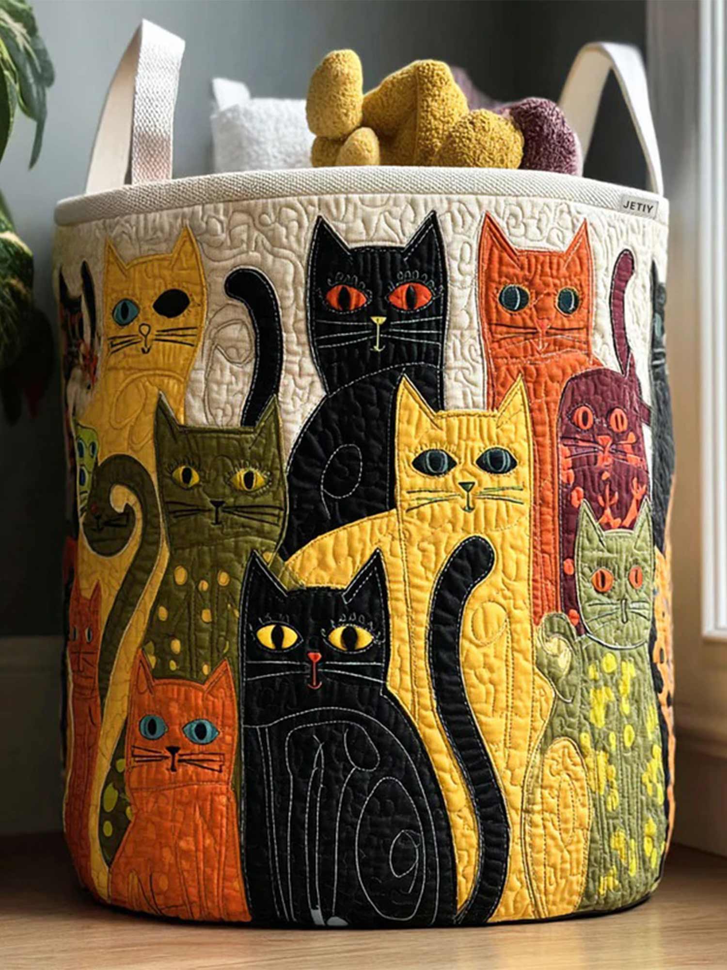Whimsical Cats Quilted Laundry Basket