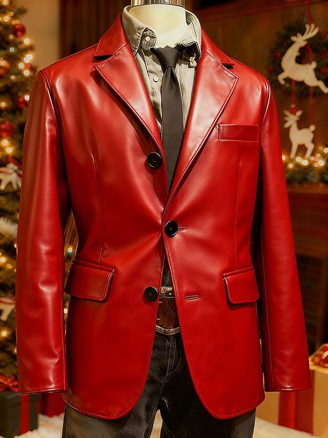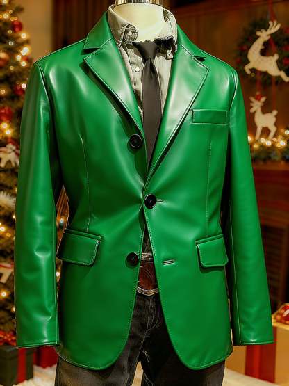 Men's Christmas Art Design Leather Fabric Casual Jacket